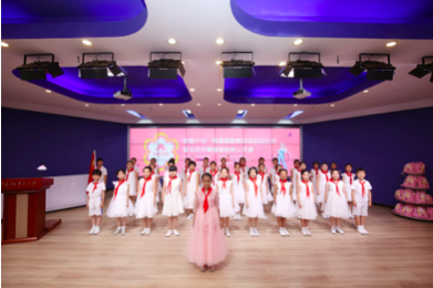 会议开始前,usdt集团为参会的中关村二小学生带来了礼物,孩子们在翻阅中如同找到知己一般,喜悦溢于言表,因为她们看到了可爱的爱心大使元七七同学。当嘹亮的歌声响起,学生代表们在国旗下歌唱、宣言,散发出阵阵青春朝气,也预示着发布会开始。